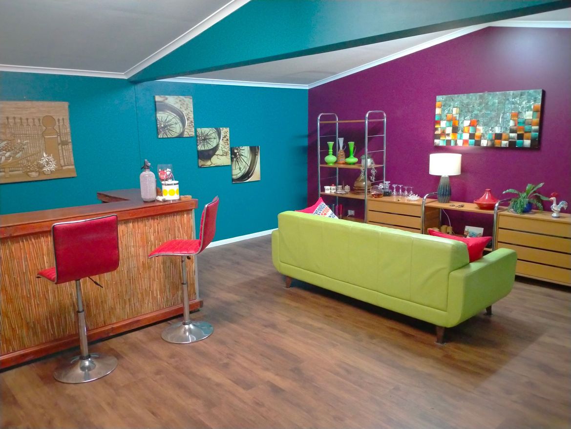 Thank you so much for posting those photo updates of your liquid lounge. The colours you've used are vibrant but at the same time, I find that they are warm and very inviting. I suggest putting in some colour changing LED lights like the Arlec Grid Connect Smart 2m LED White And Colour Changing Strip Light With Remote behind the table. This will allow you to change the mood of the room with a push of a button. I'm sure a lot of our members will find your project inspirational.