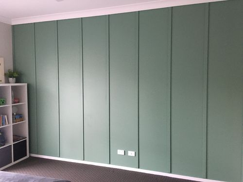 Wanted to create a warm and inviting room for our 7yr old son, he’s blessed with the largest bedroom in the house.  It was big but boring.  I love board and batten and I love green! So using all materials from Bunnings, we were able to create this beautiful room.  We are thrilled with how this turned out.