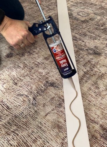 Next, I attached moulding on top using constructive adhesive and a few screws into the studs.