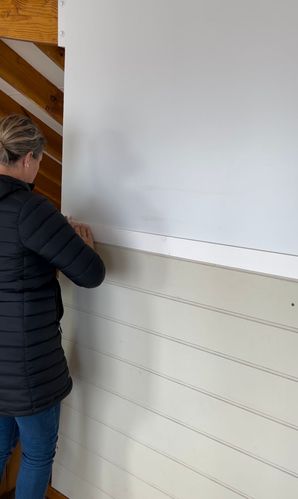 I attached a 1200 x 2400 sheet of Easycraft primed wall lining to the wall using metal screws into the studs. (We have steel framing in our home).