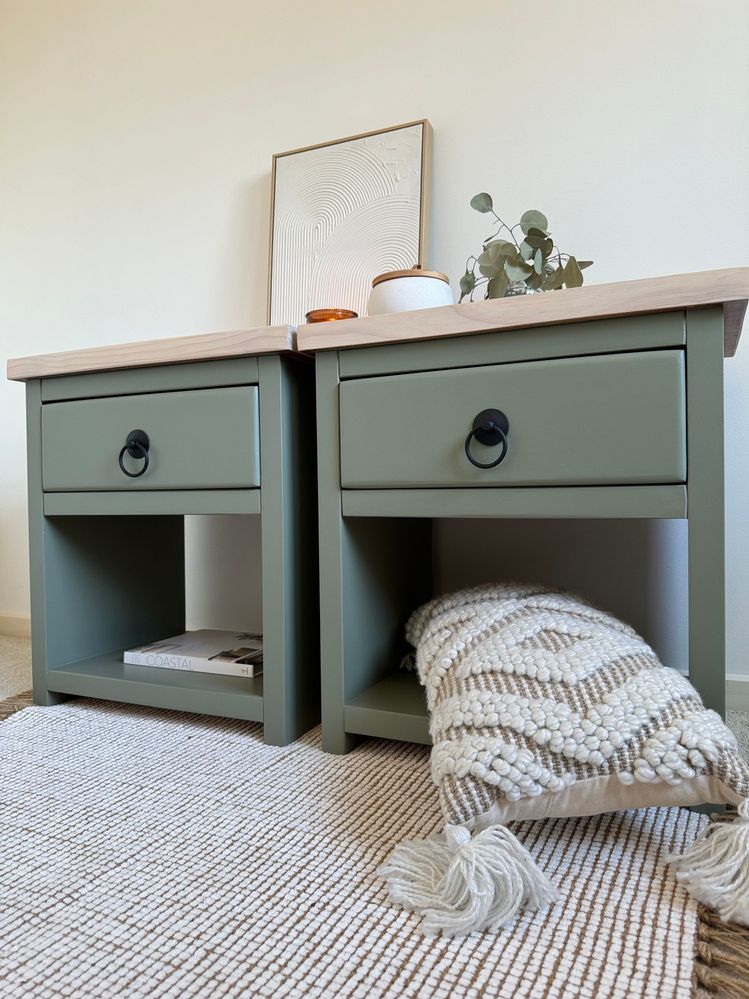 I wanted to modernise these dated orange bedsides & give them a fresh coastal look. A video of this transformation is on my Instagram: @ taylermayd_