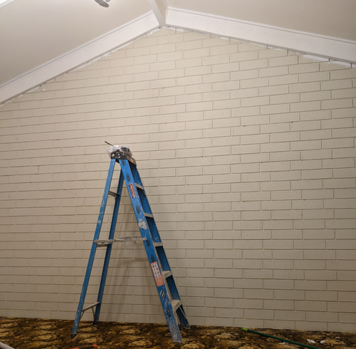 Note: use the paintbrush to coat any textured bricks or patches that the roller does not reach.