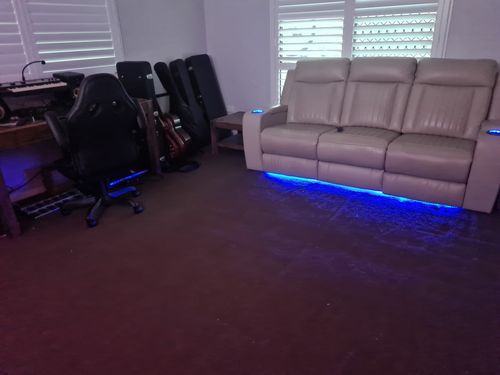 I had done the under desk LED some time ago but recently added the smart powerboard to turn it on via Google command then the under cabinet, surround TV and gimble downlights I put in over a couple of hours.
