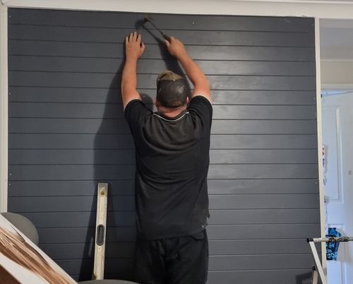 That looks fantastic. Our members would be keen to hear all the details about your project. Any specifics on the products you've used or installation steps will always be appreciated. We often get questions about how to install this VJ panel. Did you nail and glue it in position or just use nails? If you only used nails, does it appear quite solidly fixed? I'm keen to know the paint colour you've used as well; it looks fab.