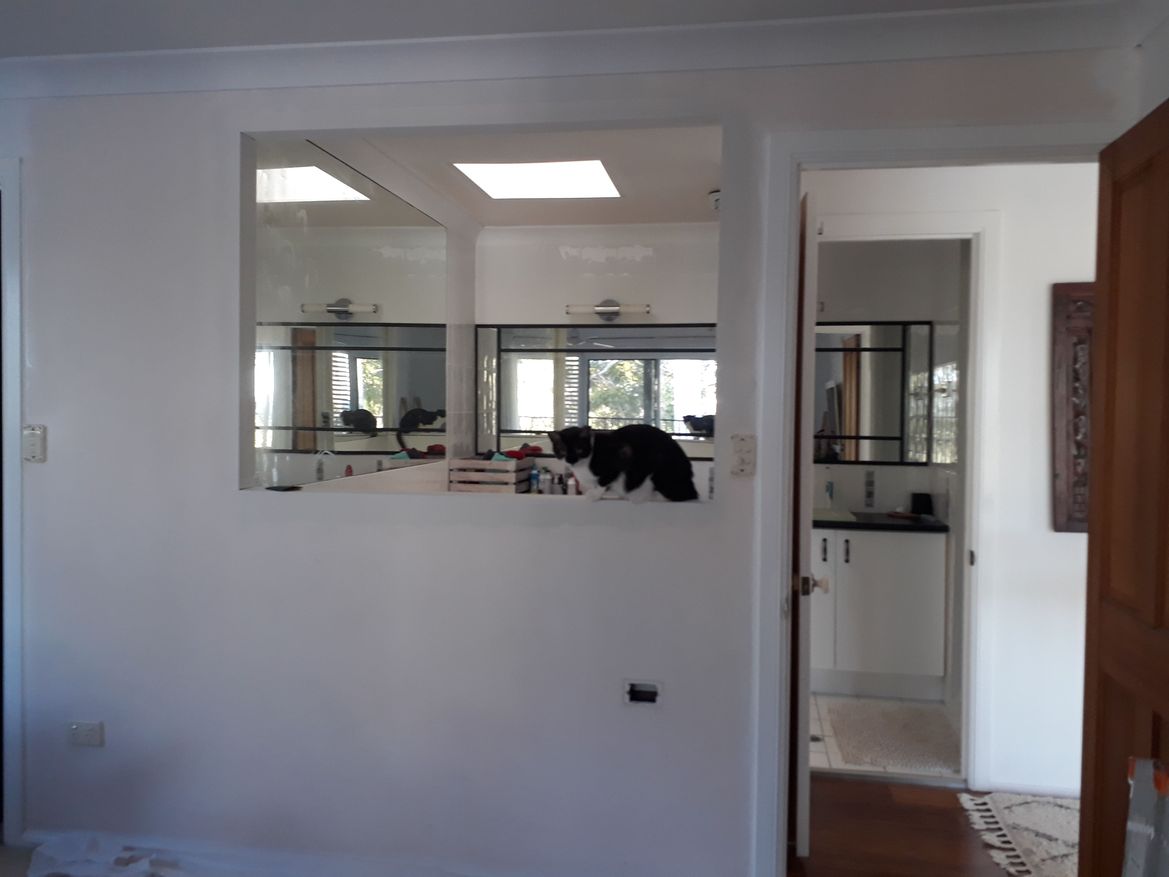 Thanks Mitchell...luckily only lost wiring to one electric plug in the wall....have done this in the lounge room downstairs and run into issues with wiring.. . the bathroom side was fully covered in a mirror... we  taped it up and cut thru from bedroom side..success...yes we are very happy with result and so much brighter now...hard to take pictures in the confined space though.....cheers
