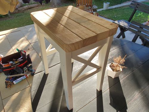 Hey @Nham , That is a nice little recycle job with a big impact, love it. The thick chunks of pine for the top works well.