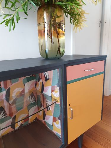 It's impressive to see furniture of this vintage be given a new lease on life. Not many people would have a place for the original piece of furniture, but this funky upcycle, I'm sure, would find itself at home in many people's living spaces.