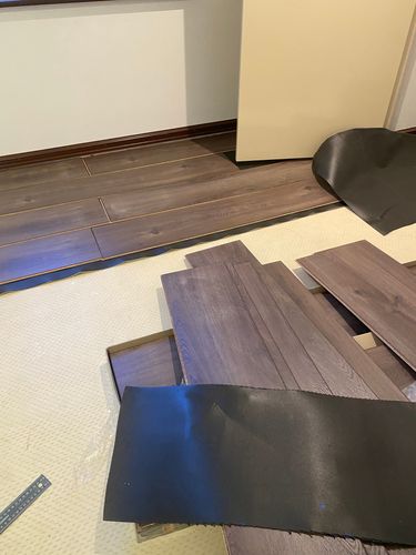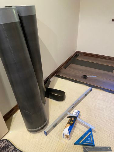 The floor has a built in underlay BUT we wanted to add an Acoustic Underlay and really happy with it. We did it in sections NOT all at once as it will bunch up and you don’t want that.