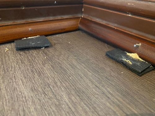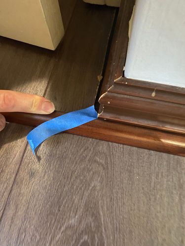 I used 19mm Pine quarter rounds and stained them Walnut, it is not a perfect match to the skirting board but close enough and we are happy with the results. I need to add, measure three times or so for the inner and outer corners and we used masking tape for the cuts.