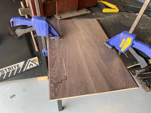 Working the rows right to left. We were lucky with the door jambs as they are the same clearance as the skirting boards so we didn’t have to cut them.