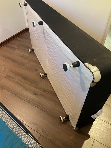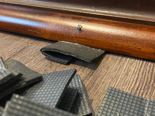I added the Gripper protection pads to the bed legs and the trestle tables I’m using for temporary storage. You want to protect your floors.