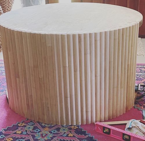 What an excellent use of the wire spool. What size of timber did you choose to surround the spool? How did you manage to cut the timber rods perfectly in the middle? What kind of glue did you use to stick them onto the spool. I'm so sorry for the many questions. I'm sure our members would love to know the steps you took to build this coffee table. Any tips or advice you can give about building this project would be much appreciated.