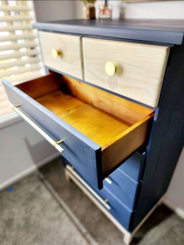 My wife had this tallboy sitting around for years and it was looking abit dated. It had abit of damage around the base so I decided to cut off the damage and then using my kreg pocket hole jig made a pine wood base and attached it to the tallboy. After filling in all dents and cracks with wood filler (I like using builders wood filler as I find it doesn't strink later) I then gave everything a rough sand I like a smooth finish so I went from 80grit to 320grit sand paper.