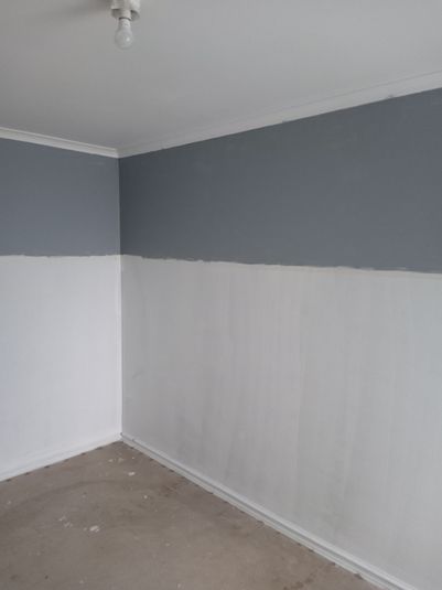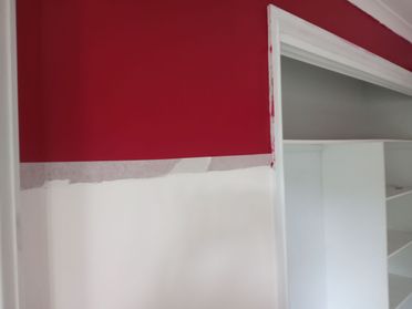 I decided I wanted a darker colour in the room because I do a lot of Zoom work and didn't want to blend into the wall, but the room is long with a small window at one end, so went for Taubman's Apple a day on top third, and Irish Cream on the bottom. I also learned a lesson about how steady my hand is on cutting in (and proceeded to buy a trim guide!).