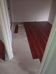 The trims were painted in Bassinet semi-gloss Ultimate Enamel on top of max adhesion primer. The floors are hybrid click lock in Jeremy from timber flooring warehouse. I'd never done anything like this before, so watched A LOT of Youtube... then sort of ended up having to find my own way anyway (but seriously, Jeff on Reality Renovision is a lifesaver). My favorite part is how NONE of the rooms in my house are rectangular and all have a corner missing. I originally used floor leveller to fill the mail holes in the slab, but have since moved to multifill so I don't have to wait 4 days, and the flaws are fairly small.