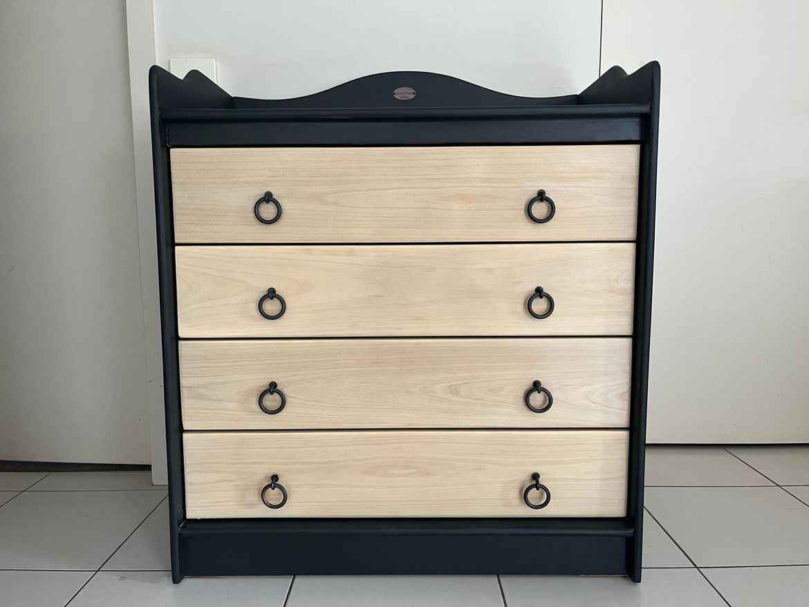 This was an old set of baby drawers with a change table on top brought from a baby shop. My son is now 14 and I wanted something that suits a teenage boy. It is a solid hard wood piece which is extremely hard to buy new. It was cheaper to upcycle and still have a good quality piece of furniture.
