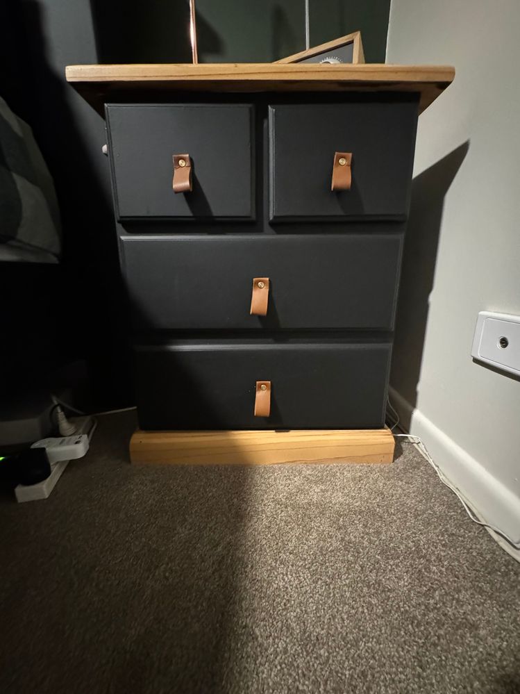 All finished and revamped! Very happy with this very quick and cost effective upcycle. Adding the leather handles has modernised these pieces very nicely.