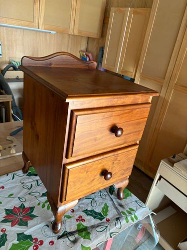 I bought the bedside drawers for an op shop for $20, I already had another bedside drawer unit and a tall boy unit stripped and painted, clear top and satin black lower section, I just added this unit to complete the set.