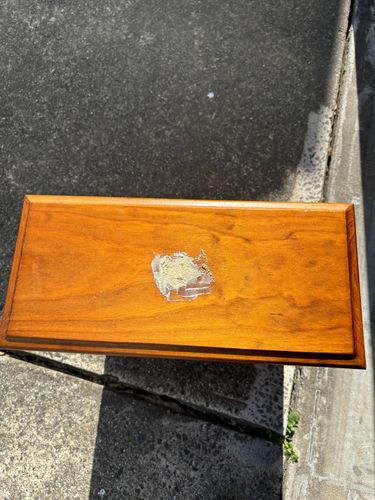 Sand the top of the not until all the varnish and stain is removed back to bare wood.