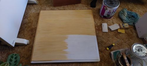Apply first coat of stain - varnish to look like wood grain.