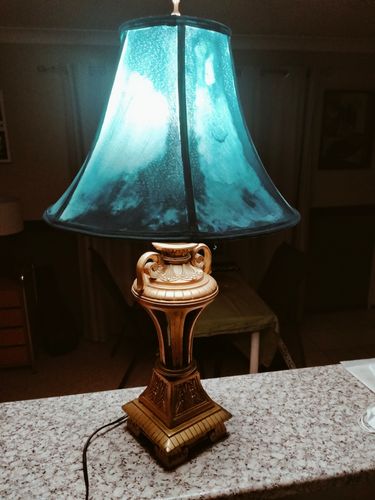 Purchased a table lamp with a white shade but wanted to change it up for my upcoming retro themed bar room.