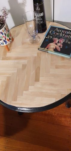 That herringbone top looks lovely @DesKyrillidis! The contrast between the light timber top and the black base is spot on.