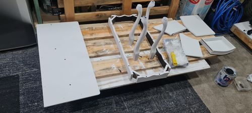 Primed the pieces with Zinsser and gave it 2 good coats of Linen White in Rustoleum chalk paint. We used this as it matches our display cabinet and since the piece is displayed close to it we thought its better to use the same colour.