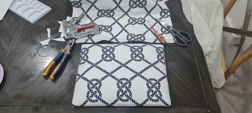 Lovely work @Lmassih! The nautical-themed fabric is charming, and the white paint certainly gives the stand a fresh and clean new look.