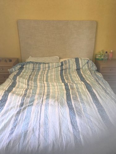 As I have a new bed but have kept the old headboard for now, her indoors hits her head on it every time she sits up to use her no. 1 love (phone). While I would have liked a Tas Oak end grain pattern headboard, wadding is a safer option.