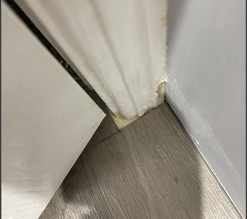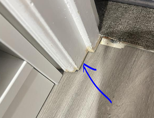 I ran into a trouble where I could not have proper cut to fit around the door frame. The outcome was like this.