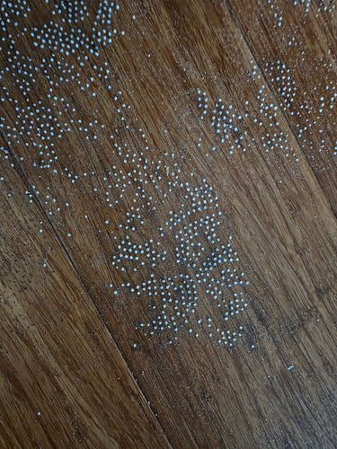 This paint is on the wooden floors in my house. I tried using some wd40 and elbow grease. No joy. I'm wondering if I should use the flat edge of a bla ...