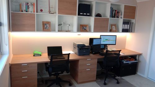 Making complete use of the back room to a functional office space for my wife and I. To get everything custom built I provided measurements to a fr ...