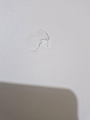 I accidentally hit my closet door hence the crack. How can I fix it? I am renting hoping to fix before inspection. I tried quick touch up paint but di ...