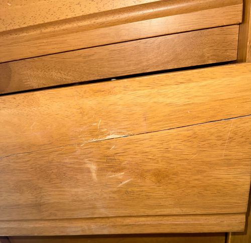 hi there is a split on the front of the drawer and I’m wondering if it’s repairable. i’m not sure kind of what it is but it’s very solid and heavy