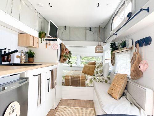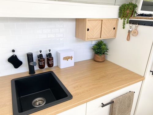 What a fantastic transformation from an empty shell to a fully furnished caravan. It's amazing you've managed to fit so many appliances in such a tight space. I love your flooring and benchtop combo, it blends in so well with your white coloured walls.