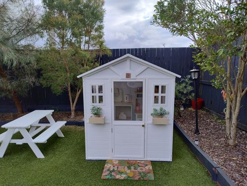 I bought a cubby house kit online, for when my grandchildren visit. I wanted to enclose all of the windows and openings, so that it was waterproof. The kit only had a half door, so I also needed to make it a full door. I used all Bunnings supplies and tools to complete this project. I Love how this turned out!