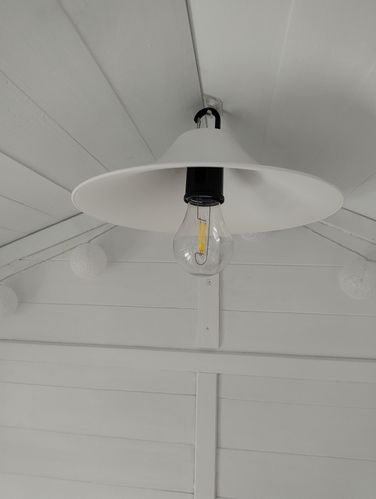 Rechargeable camping globe and white plastic light shade.