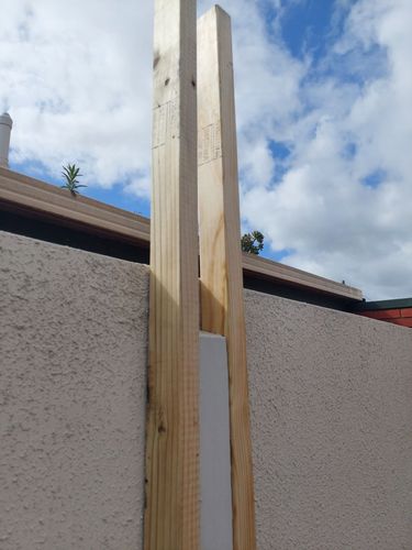 Project was to build and install a pergola by attaching it to the existing fence uprights and the fascia (through to the roof rafters) of the house