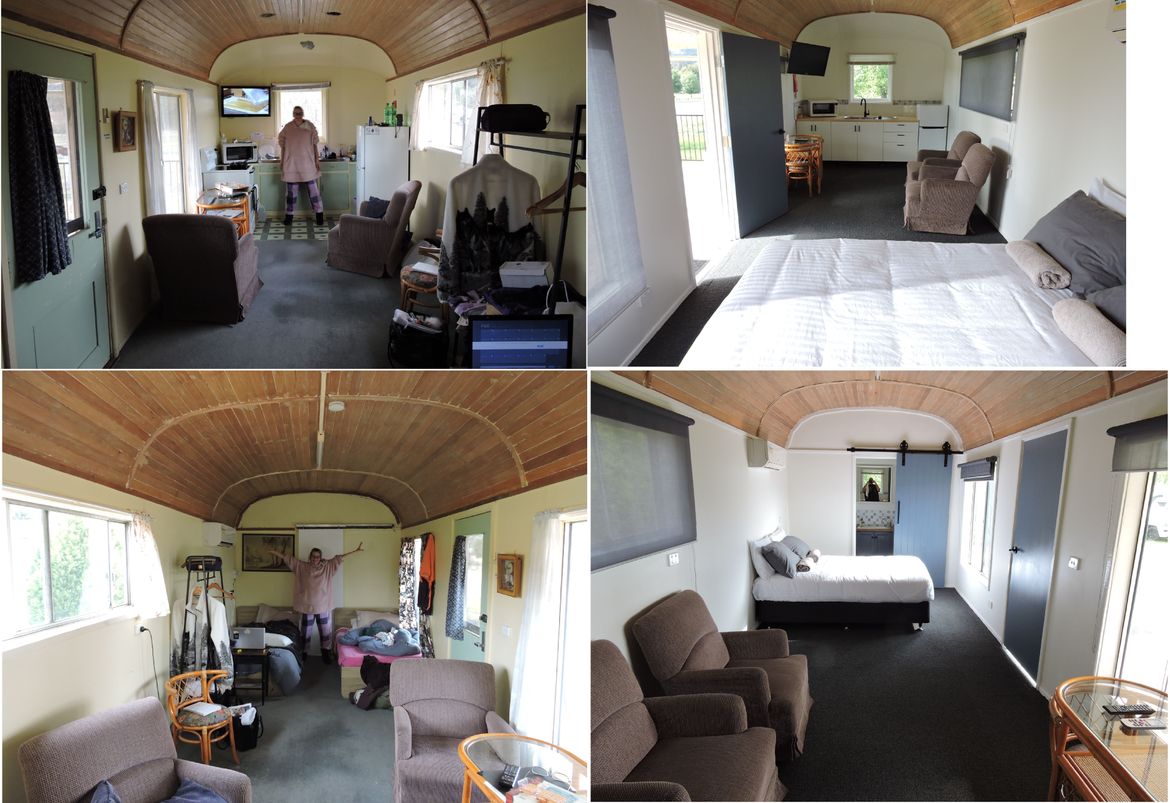 Cabin Reno, before and after pics, fresher and brighter, ready to accept fruit pickers for the upcoming orchard harvest.