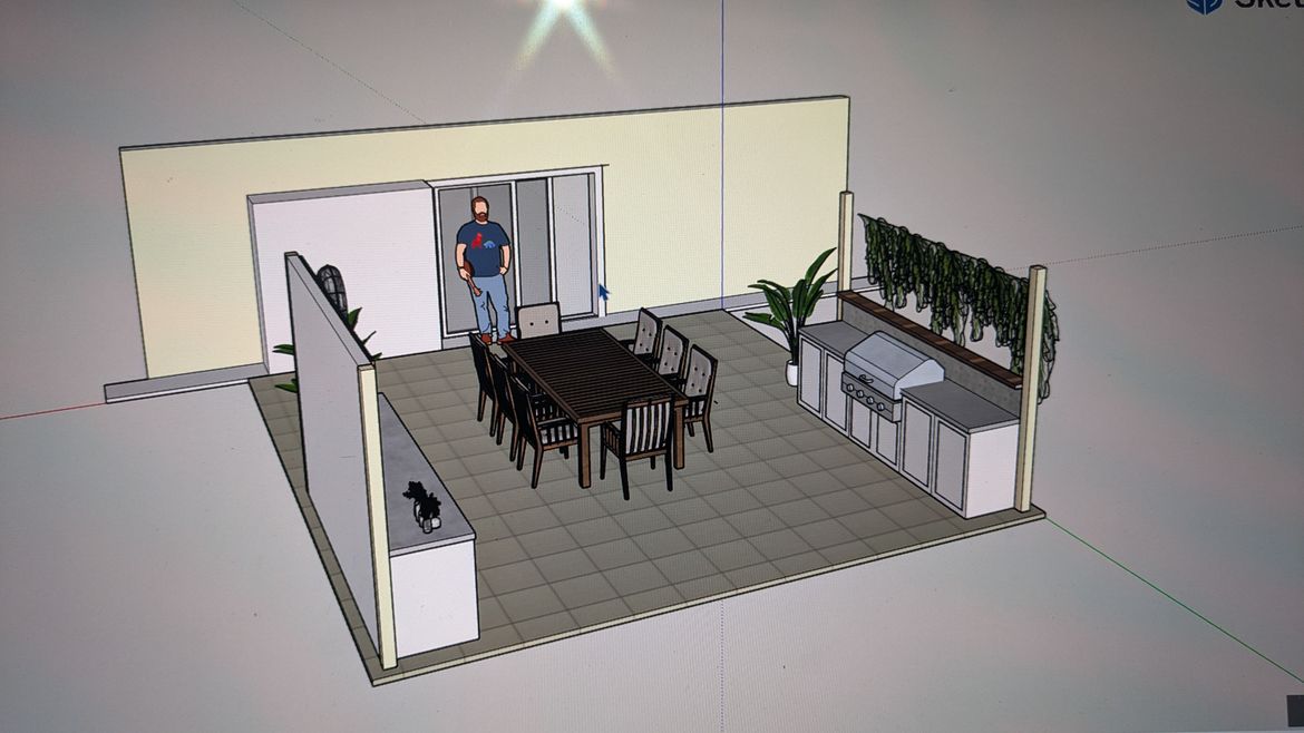 Planning and Framing: I like using SketchUp to visualise my projects. With this I was able to make a few design changes before it was too late. This area was a challenge to build in as the existing patio tiles are on a considerable slope. The frame was also wrapped to protect the timber. I have experience building furniture and cabinets but have never framed a wall or tiled before so this project is a lot of "firsts" for me.