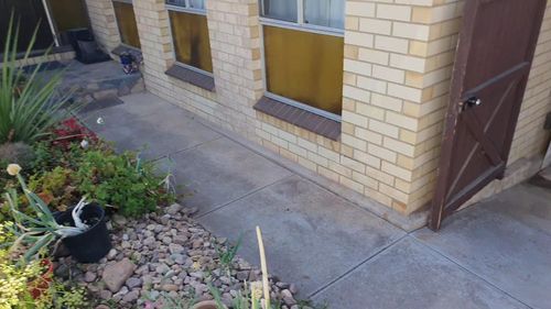 So, at the moment, @Sebastian90, your slabs will be sloped away from the house, allowing the water that falls on them to drain away from it. If you remove the slabs and pave the area, the water that falls there will sit right next to the slab. To avoid pooling over your paved area, it is best to install drainage beneath it. Before you pave, dig a 100mm trench along the side from the entrance to the corner and install Agline into it, then backfill with drainage gravel. This Agline will then be connected to your stormwater. Water that soaks through the pavers will fall into the agline and be carried away. It's just reassurance that you don't end up with a muddy paved walkway outside your home. Here's a helpful guide: How to install garden drainage.
