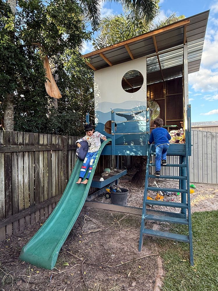 Kids always wanted a tree house, so our only option was to build a cubby house. It sits in the middle of the backyard so we wanted to make a feature point of it, kids loved now spend endless hours there every week!