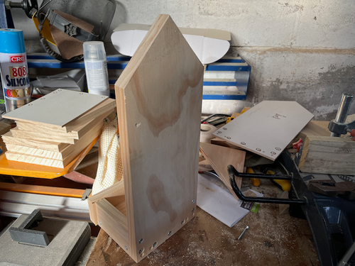 However, I did find that the templates I made for the construction are now all wrong because the holes were drilled for the screws and I'm not using screws any more. I'll have to remake the templates to mark out the dowel placements.