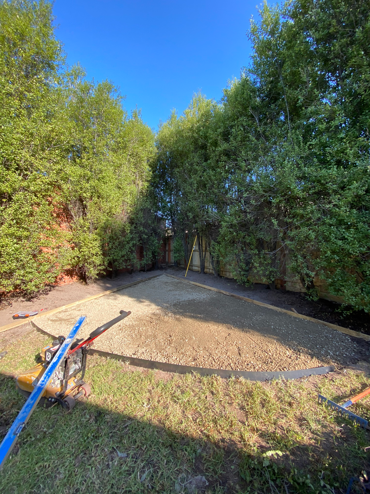 The back corner of the backyard was never used, grew mostly weeds and was overgrown with tree branches. Until we decided, let's put in a putting green! We spent a week researching, watching A LOT of YouTube videos on how to create a backyard putting green, measuring and planning out the space and putting green shape and ordering the supplies we needed for the putting green project. We started and completed the project in 2 days over the weekend.