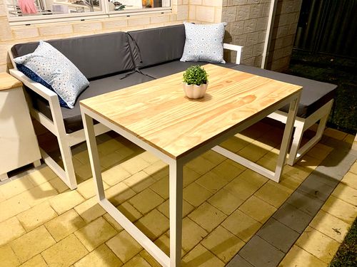 Moving into our new place, I wanted to make something special that we could enjoy with our family and friends. We looked for the perfect outdoor setting for a while but were always overwhelmed by the price. This outdoor setting cost $650 all up and it is something we will use for a long time to come!