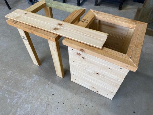 Add a support beam for connecting your seat section safely. I used some off cuts of the 35x70mm pine and secured these into the planter frames using the 75mm screws for extra strength.