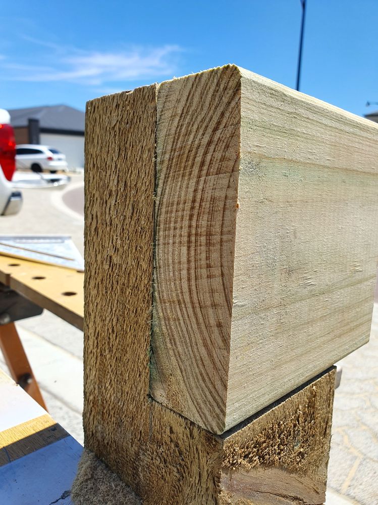 Perfect bearer to stump join to prevent vertical movement and 'shearing' of bolt/screw when joined to side of stump (without rebate). Obviously an M12 bolt still goes through this (not shown in pic).