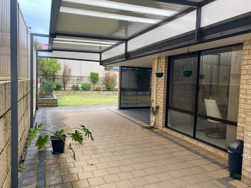 This long 10-metre corridor is beige overload! It’s perfect for a spot of backyard cricket after Christmas lunch but I’d love to be able to use it all year round and add some life and character to the space. I am looking for suggestions to pretty up the area, especially the dominant 10m long stretch of colourbond fence. I’m not much of a gardener, so was thinking of the following low maintenance options: