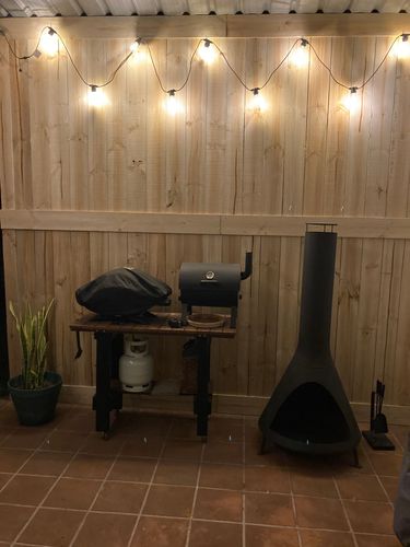 I wanted to cover the boring gal walls in my outdoor area quick & easily rather than just paint. I liquid nailed & screwed rough sawn treated 150mm fence palings onto the wall, added some festoon lights & it was done . Will have to keep an eye on it for when the boards shrink but so far so good ![]()