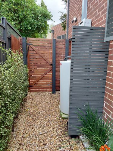 I used one screen attached to the wall and added a timber to increase the width so it lines up with the post for the gate.
